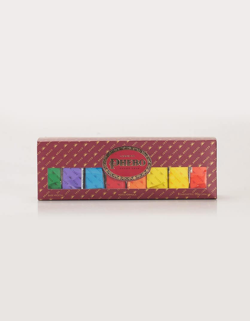 Conteúdo: 8x90g. Lavanda, Frescor da Manhã, Amazonian, Odor de Rosas, Lima da Pérsia, Naturelle, Raiz do Oriente e Patchouly.