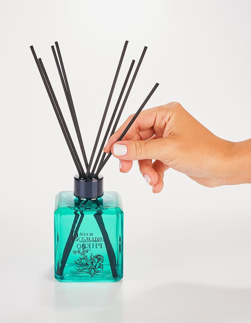 Descrição da fragrância: Cítrico Aromático. Perfume, decore e torne o ambiente mais sofisticado. O frasco devidro que torna o ambiente mais sofisticado. Acompanham varetas difusoras de alta absorção e poder perfumador. Embalagem em caixa rígida com detalhes em hotstamping prata, com ilustração que une o alecrim a elementos marinhos, remetendo ao significado de seu nome: orvalho do mar.