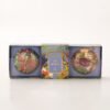 Conteúdo: 3 sabonetes em barra 150g e 3 bolas de Natal estampadas.