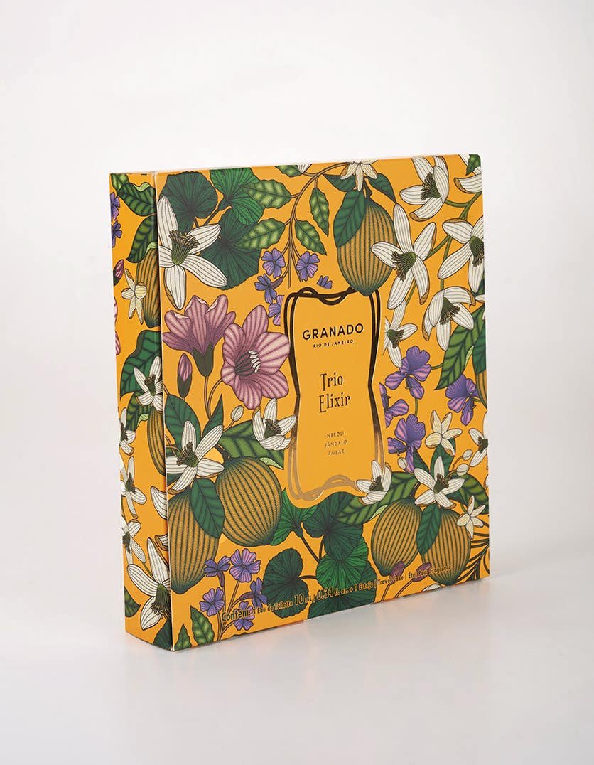O kit Coleção EDTs Elixir traz as fragrâncias Neroli, Sândalo e Âmbar em tamanho exclusivo de 10ml! Além de acompanhar um charmoso estojo estampado com a temática da fragrância Neroli para ser usado como porta-fragrância. Perfeito para carregar no nécessaire e na bolsa.